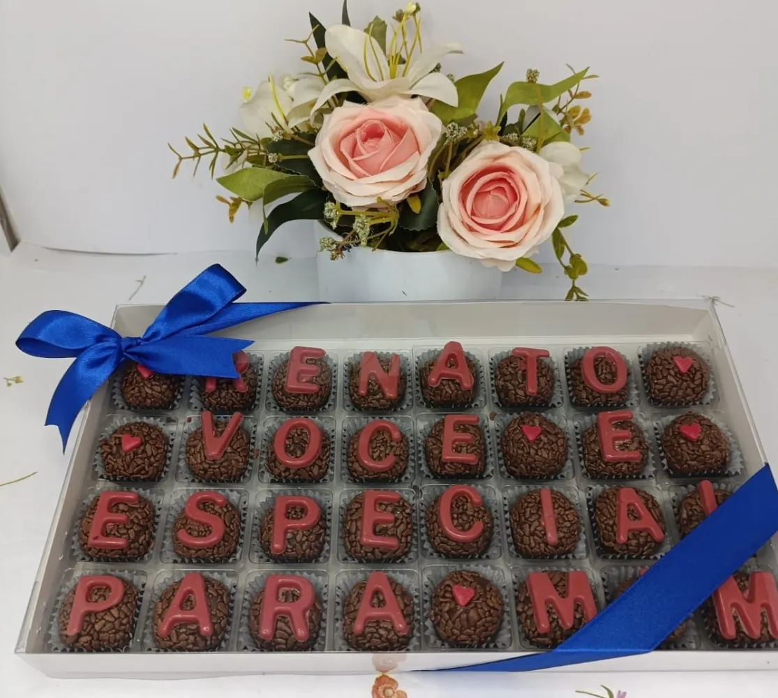 01 Caixa com 32 brigadeiros e frase conforme seu desejo ( respeitando o número de letras e números)